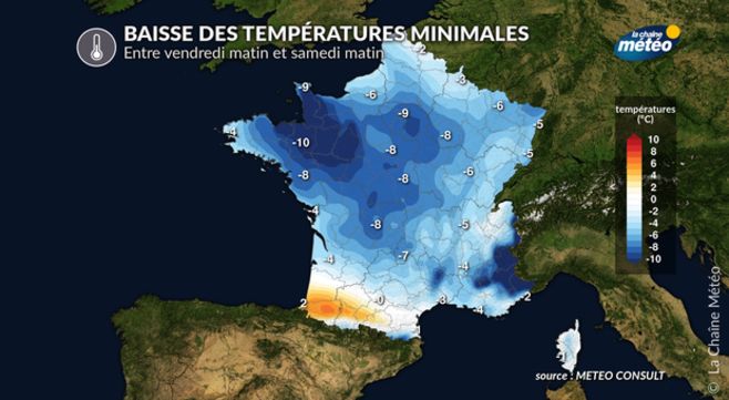 Chute des températures entre vendredi matin et samedi matin © La Chaîne Météo
