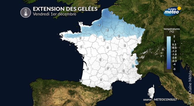 Extension des gelées ce vendredi 1er décembre © La Chaîne Météo