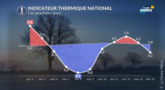 Ce froid devrait persister toute la semaine, avec un pic attendu entre lundi et jeudi ou vendredi prochain selon notre indicateur thermique national.