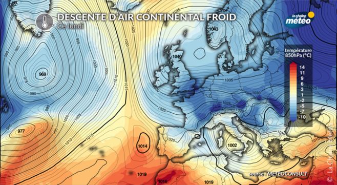 Cette semaine est marquée par la descente d'un air continental froid sur la France. Ce froid va persister toute la semaine avec des températures très largement inférieures aux normales de saison.