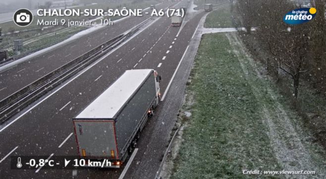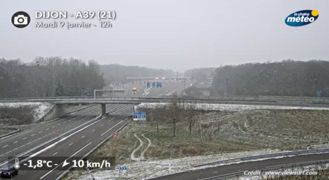 Dans le centre-est, des chutes de neige modérées concernent l'Isère, la Savoie et l'Ain. Elles remontent maintenant sur la Saône-et-Loire et la Côte-d'Or en donnant un saupoudrage d'un à deux centimètres dans les campagnes. Soyez vigilants sur les routes.