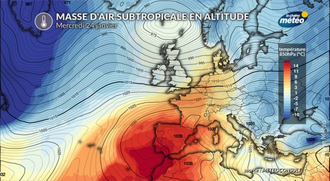 Après l'air polaire, c'est une masse d'air océanique et même subtropicale qui va concerner la France en milieu de semaine. Cette douceur va permettre aux températures d'atteindre des niveaux remarquablement élevés pour une fin de mois de janvier.