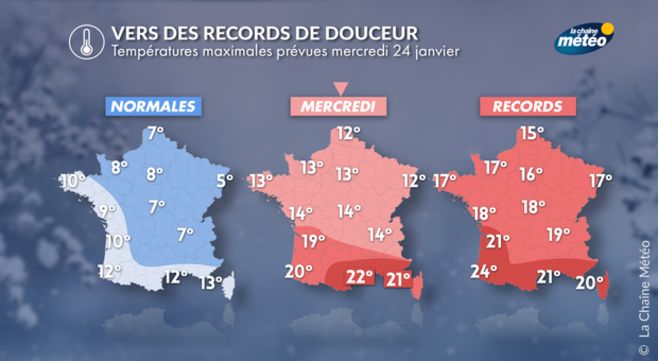 Météo du mercredi 24 janvier : douceur exceptionnelle au sud, temps toujours mitigé au nord