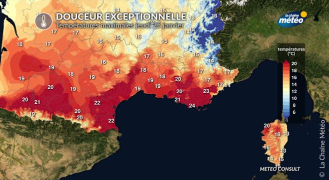 Températures maximales du jeudi 25 janvier 2024 © La Chaîne Météo