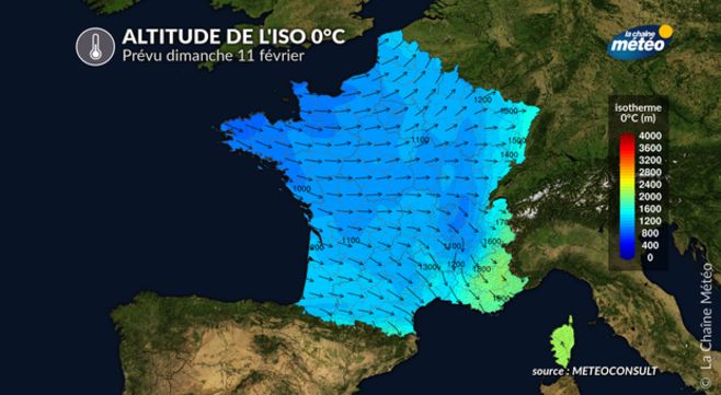 Altitude de l'iso 0°C prévu dimanche © La Chaîne Météo