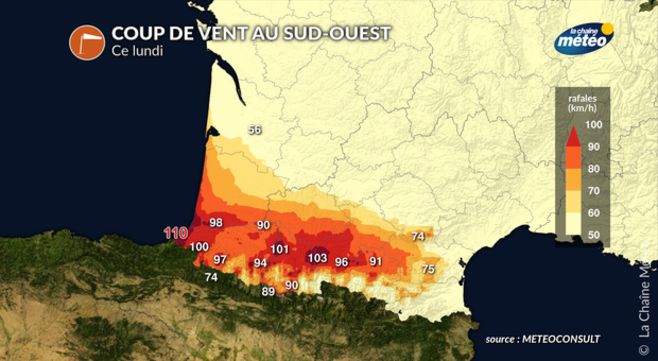 Coup de vent dans le sud-ouest ce lundi © La Chaîne Météo