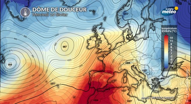 Cette grande douceur est remarquable par sa durée et par les maximales atteintes (tels les 27,5°C dimanche 4 février à Céret dans les Pyrénées-Orientales, record mensuel). Après la petite baisse de la température ce lundi et malgré les bonnes chutes de neige, le retour de la douceur va contribuer à faire fondre cette neige dans les Pyrénées et le Massif-Central. Ne parlons pas du Jura ou des Vosges où la neige est quasiment absente. Seules les Alpes tirent vraiment leur épingle du jeu, notamment les stations de ski situées au-dessus de 1800 mètres d’altitude.