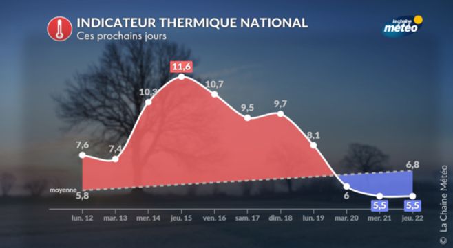 Depuis le 20 janvier, les températures sont quotidiennement de 4 à 6°C au-dessus des moyennes de saison à l'échelle de la France. La journée la plus chaude avait été le 24 janvier avec un indicateur thermique national à 12,28°C alors que la normale est de 5°C. La douceur se maintient cette semaine, avec un nouveau pic de douceur attendu en milieu de semaine en raison de la remontée d'un air d'origine subtropical.