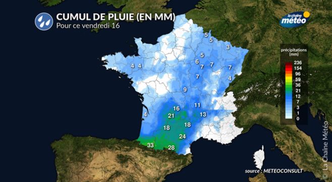 Cumul de pluie pour ce vendredi © La Chaîne Météo