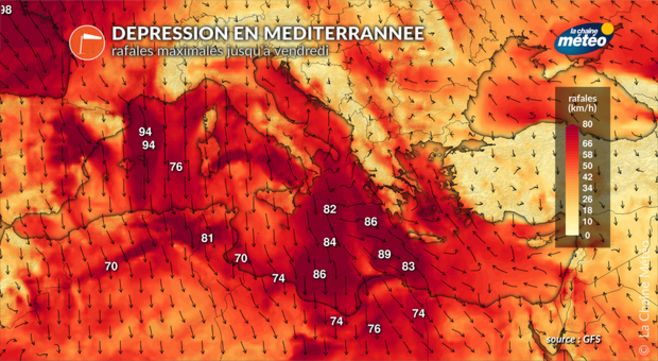 Rafales de vent prévues en Méditerrané © La Chaîne Météo