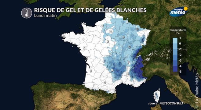 Après un week-end agité et au ressenti parfois hivernal dans l’est, un faible risque de gel est confirmé dans l'est lundi matin. En revanche, le risque de dégâts en arboriculture semble limité.