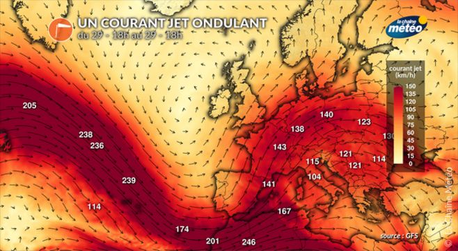 Un jet stream ondulant sur l'Europe de l'ouest © La Chaîne Météo