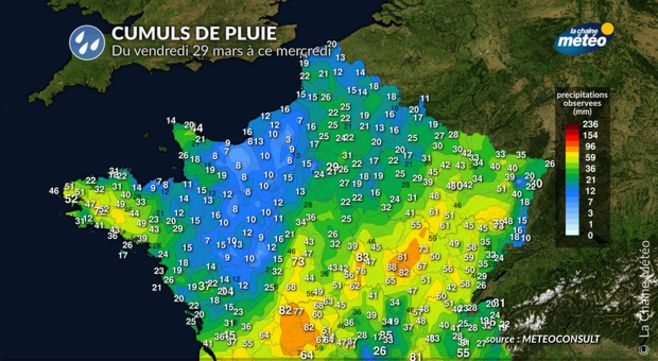 Cumuls de pluie depuis le vendredi 29 mars © La Chaîne Météo
