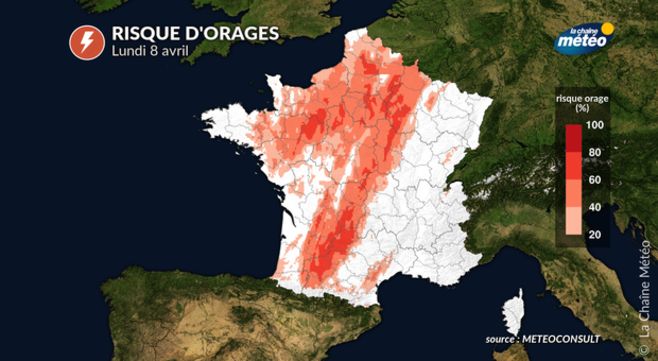 Ce conflit de masse d’air entraine lundi la formation d’un axe pluvio-orageux des Pyrénées aux Ardennes, en passant par l’Auvergne. C’est surtout en soirée que les orages pourraient localement être forts, accompagnés de fortes averses, de fortes rafales et potentiellement de grêle.