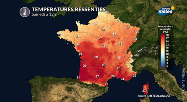 Températures ressenties samedi à 12h © La Chaîne Météo