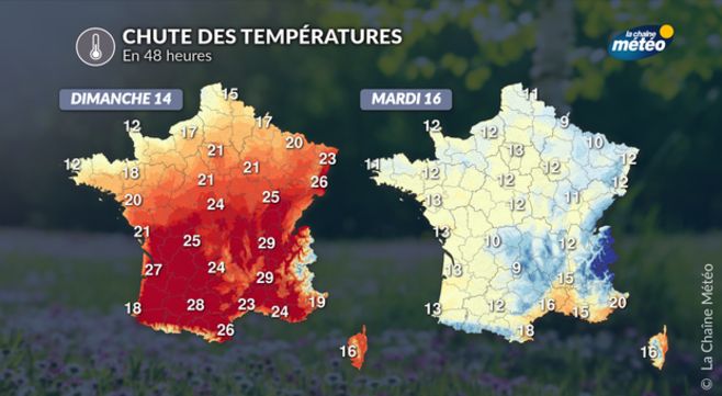 Jusqu'à 10 à 15°C de baisse entre dimanche et mardi !