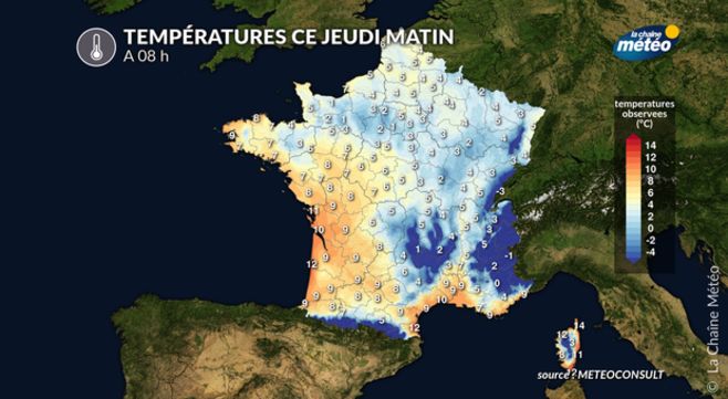 Températures observées à 8h © La Chaîne Météo