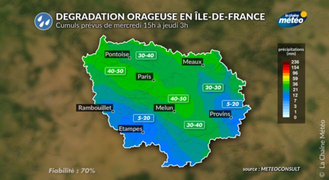Cumuls de pluie prévus mercredi en Île-de-France © La Chaîne Météo