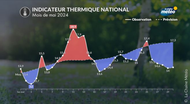 Evolution de l'indicateur thermique en mai © La Chaîne Météo