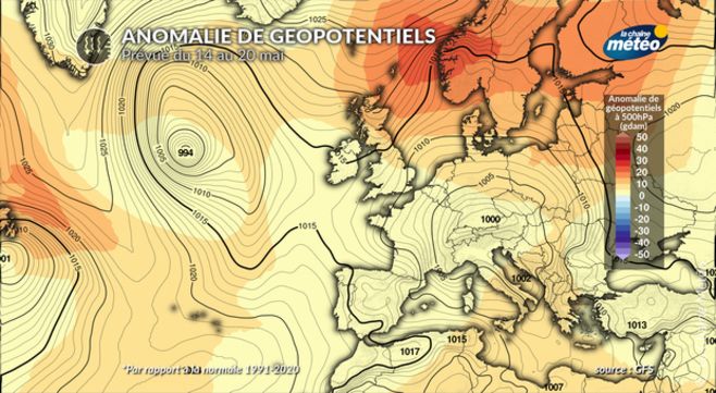 Anomalie prévue de géopotentiels cette semaine © La Chaîne Météo