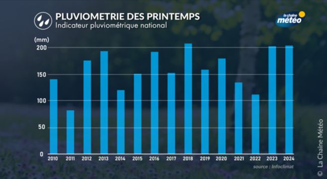 Pluviométrie des quinze derniers printemps © La Chaîne Météo