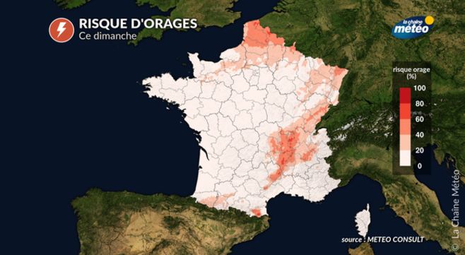- Orages parfois forts en fin de journée sur le Centre est (Auvergne, Rhône-Alpes, Bourgogne et Alsace)
