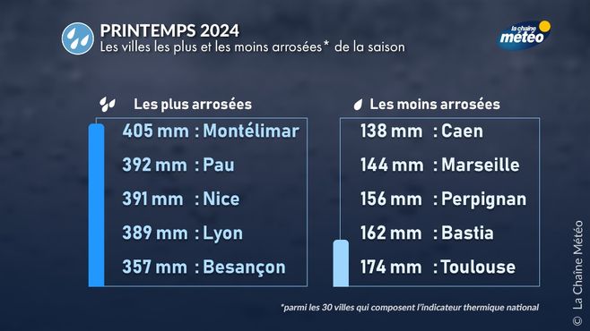 Les villes les plus et les moins arrosées au printemps 2024 © La Chaine Météo