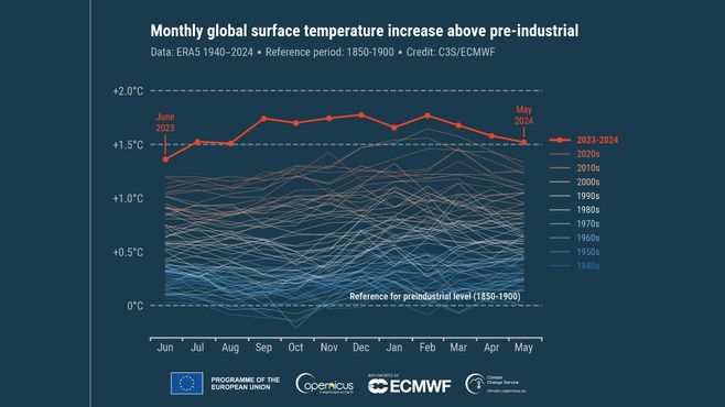 Selon le Service Copernicus, mai 2024 a été le mois le plus chaud jamais enregistré au niveau mondial. Il s'agit du douzième mois consécutif qui voit son record battu.