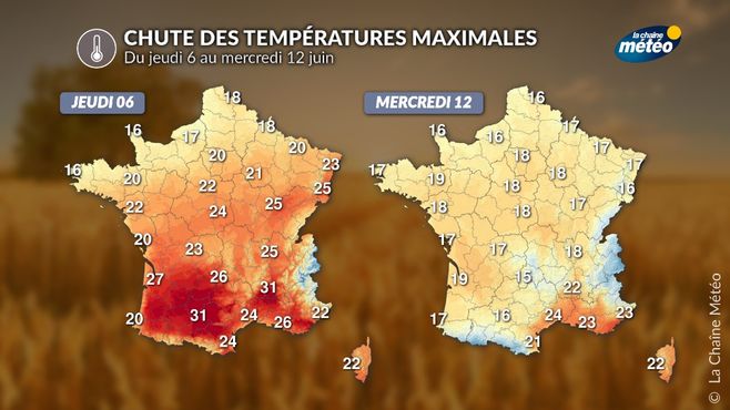 Chute des températures maximales entre ce jeudi et mercredi prochain © La chaine Météo