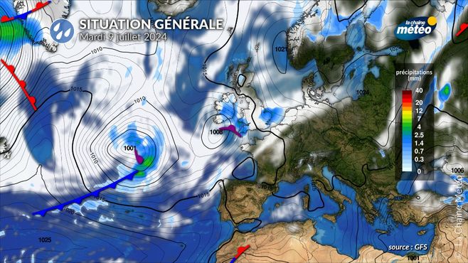 Malgré cette hausse, les masses d'air chaud ont plutôt tendance à remonter vers l'est de l'Europe, comme depuis le début de l'été. La France restera donc dans une zone de transition avec l'air plus frais des Îles Britanniques, ce qu'on appelle la zone barocline en météorologie.