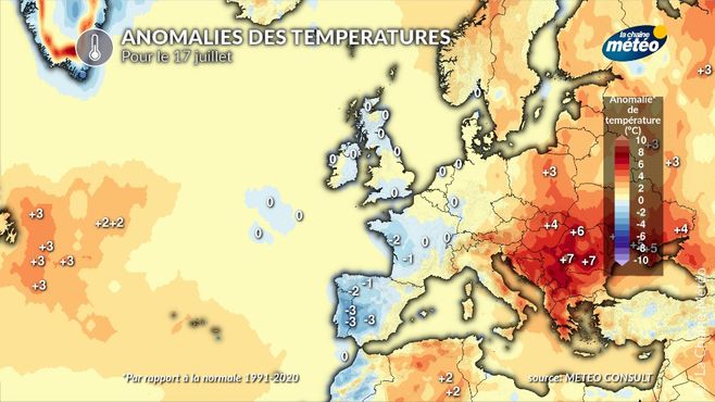 Anomalies de température prévues pour le début de semaine © La chaine Météo