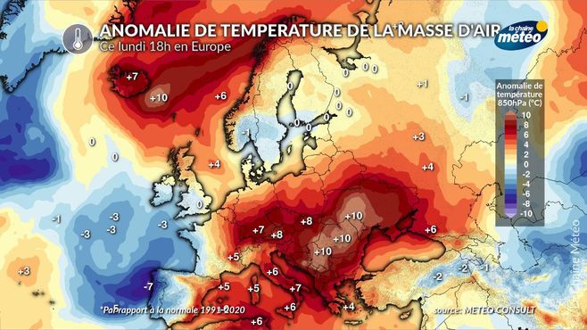 Si nous subissons sans cesse des descentes d’air frais en Europe de l’ouest, c’est bien de l’air chaud, voire très chaud qui remonte plus à l’est. Cette masse d’air subtropical remonte du Maghreb, en direction de la Russie. Sa température atteint fréquemment plus de 20°C, avec des pointes entre 24 et 28°C. Ce dôme de chaleur s’étend de la péninsule ibérique à la Turquie et englobe en particulier les Balkans. Les anomalies thermiques de cette masse d’air atteignaient ce lundi +10°C par endroit et pourraient monter jusqu’à +14°C en fin de semaine.