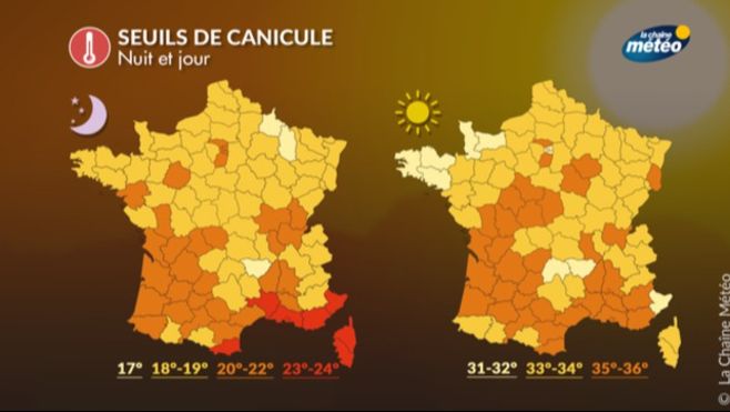 Seuils de canicule nuit et jour définis par les Pouvoirs Publics © La chaine Météo