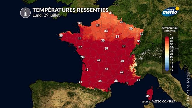Météo lundi 29 juillet : forte chaleur généralisée, jusqu'à 40°C au sud