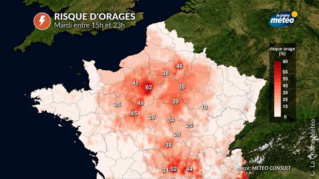 Sous l’effet de ces fortes pluies, de fortes rafales dites « descendantes » pourraient localement atteindre les 90 km/h. Ces orages, qui pourraient débuter après 18h sur le nord de la région Centre, circuleront vers le bassin parisien à la tombée de la nuit et finiront par s’affaiblir en cours de nuit, en se décalant vers les frontières du nord-est.