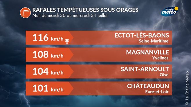 Violentes rafales de vent sous orages dans la nuit du 30 au 31 juillet © La Chaine Météo