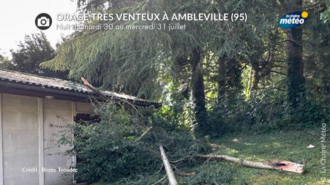 Beaucoup de conditions étaient réunies pour avoir de forts orages sur une partie du nord de la France hier : de l'air particulièrement chaud et très instable dans les basses couches de l'atmosphère, un apport d'humidité en provenance de l'Atlantique, de l'air plus frais en altitude. Un paquet d'orages multicellulaires très actifs, associé à une dépression de petite taille a circulé du Centre-Val de Loire vers la Normandie en passant sur la frange ouest de l'Ile-de-France. Elle a provoqué des vents particulièrement violents à son passage avec des rafales approchant ou dépassant les 100 km/heure. Un record mensuel de vent a même été battu à Ectot-les-Baons (Seine-Maritime) avec 116 km/h.