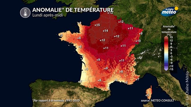 Anomalie de température en France lundi 12 août © la chaîne météo