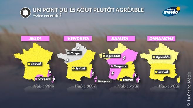 Ce pont du 15 août s'annonce assez agréable mais un peu changeant d'un jour à l'autre. Voici la chronologie afin de planifier à l'avance vos activités.