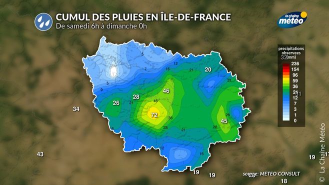 Cumuls des pluies samedi en région parisienne © la chaîne météo