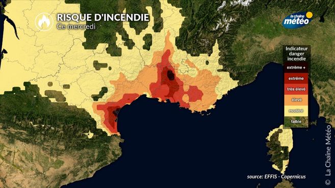Le risque d’incendie reste très élevé jusqu’à mercredi soir autour du golfe du Lion. En effet, la tramontane et le mistral peuvent encore souffler jusqu’à 60 à 70 km/h. La végétation étant sèche dans le secteur, le moindre départ de feu pourrait être catastrophique. De plus, la chaleur s’accentuera ce mercredi après-midi avec jusqu’à 36°C attendus dans l'intérieur du Var.
