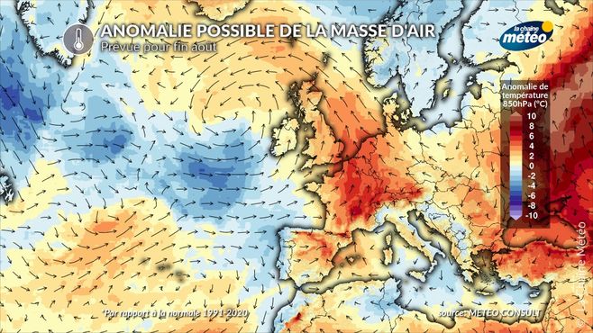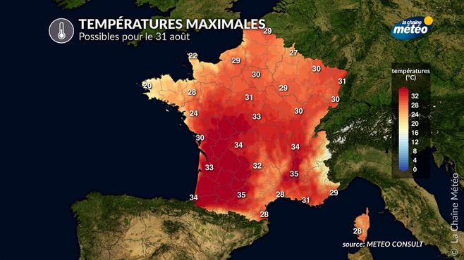 Il est encore trop tôt pour estimer l'intensité et la durée des fortes chaleurs sur la France. Si le sud semble plus durablement exposé, les fortes chaleurs pourraient envahir toute la France pendant quelques jours. Les températures pourraient alors monter 4 à 6 °C au-dessus des moyennes de saison autour du 1er septembre. Dans ce contexte, une vague de chaleur tardive pourrait être possible si cela se prolonge au moins 3 jours et 3 nuits d'affilée.