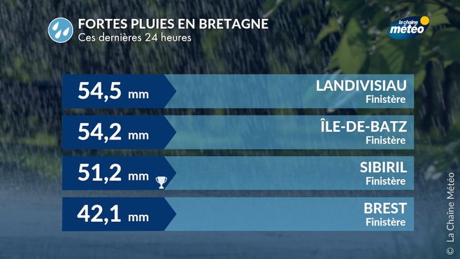 Fortes pluies en Bretagne ces dernières 24 heures © la chaîne météo