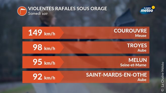 À 19 h30, une rafale vient d'atteindre 149 km/h dans la Meuse à Courouvre