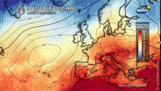 Masse d'air à 850 hPa possible le 2 septembre © la chaîne météo