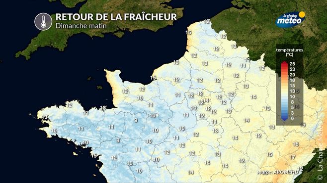 Retour de la fraîcheur dimanche matin © la chaîne météo
