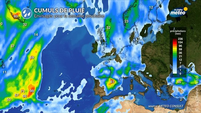 Les pluies contourneront l'anticyclone des Açores pour plonger vers le sud © La chaine Météo