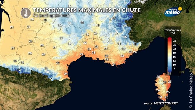 Vous souffrez peut-être des fortes chaleurs au sud-est et près de la Méditerranée. Patience, une nette baisse du thermomètre est attendue dès le milieu de semaine avec notamment la fin des nuits tropicales (>20°C).