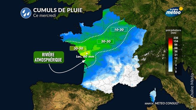 Jeudi, le temps sera encore dégradé à l'image de la veille. Les pluies vont gagner le flanc est du pays tandis que la Méditerranée restera encore une fois à l'écart. Le temps devrait commencer à se calmer en fin de semaine, mais au prix d'une chute des températures.