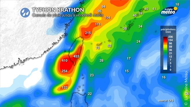 Cumuls de pluie du typhon Krathon © La Chaine Météo